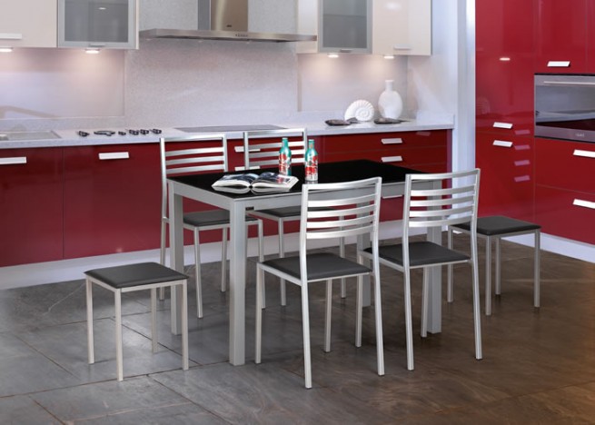 Mesa Loli + 4 sillas Moni + 2 taburetes Pitu