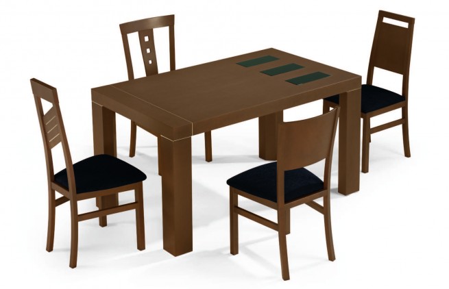 Compuesto de 1 mesa extensible Berta o Belén + 6 sillas a elegir entre los 4 modelos de la fotografía.