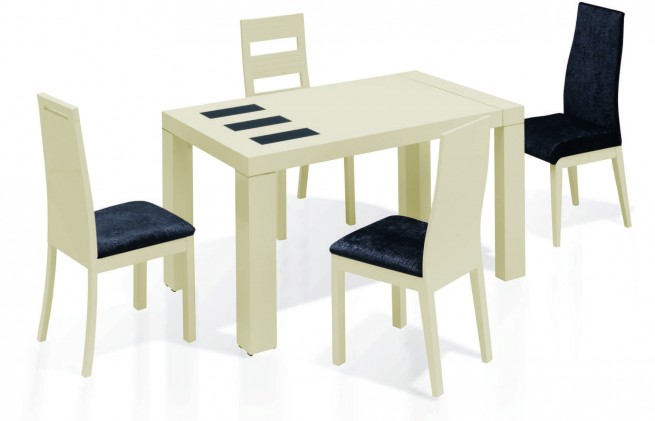 Compuesto de 1 mesa extensible Berta o Belén + 6 sillas a elegir entre los 4 modelos de la fotografía.